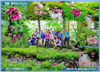 ○ 金山でも歩こう会 からのご連絡 運動不足で悩んでいる方、遠くのハイキングやトレッキングが無理でも 近くのハイキングなら参加できるかた、健康ウオーキングしませんか? 約4時間ほど(昼食休み時間含む)の周回コースを廻ります。(^_^) 日時: 定例 毎月2回 第1、第3水曜日 10:00出発 集合: 定例 呑龍さん境内集合 行先: 太田金山ハイキングコース (時に近隣の里山へも出かけます・・) 持ち物: お昼の準備(おにぎりなど)と飲物持参ください。 予約不要!、雨天中止、気楽にご参加ください。 毎月発行の「おーろら通信」で場所、日程確認ください。 |