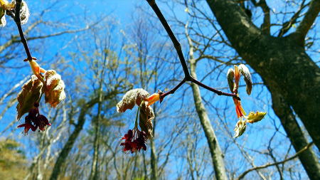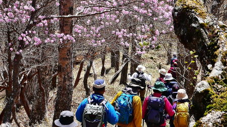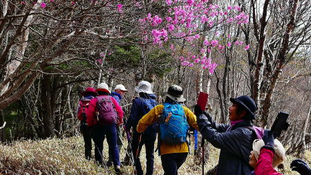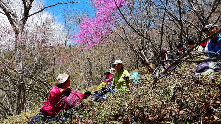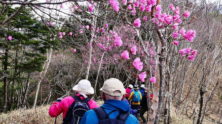 ここからが本番、少し歩くとアカヤシオが次々に現れ、高度を少し下げミツバツツジが現れた。