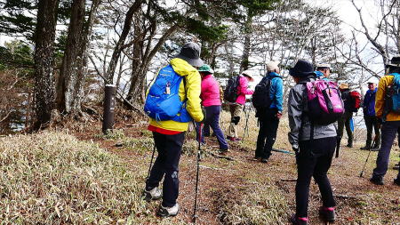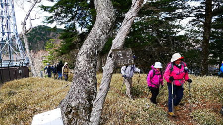 アンテナのある狸山で小休止後今度は下り、車道に出て茶ノ木平登山口より再度上る。