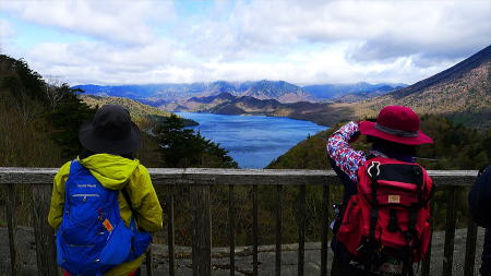茶ノ木平展望台より中禅寺湖が眼下に、背後に日光連山が聳え眺望はバツグン!
