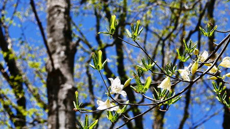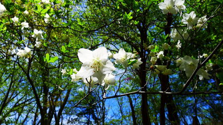赤紫色が冴えキレイだ。細尾峠に近づくと今咲き出したかの様なシロヤシオが現れた。