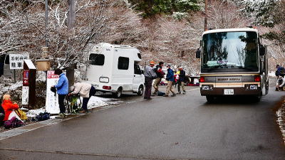 太田BTを4時50分スタート。東松山ICより関越道に乗る。鶴ヶ島JCTより圏央道、中央道、東富士五湖道路を走り山中湖ICで降りる。大月JCTを越えると三つ峠付近の山々が白く雪を被っていた。