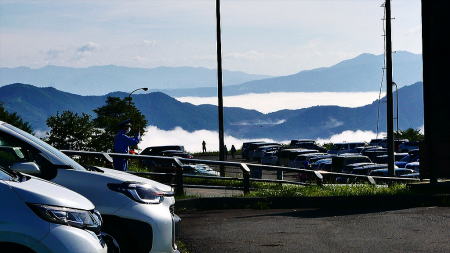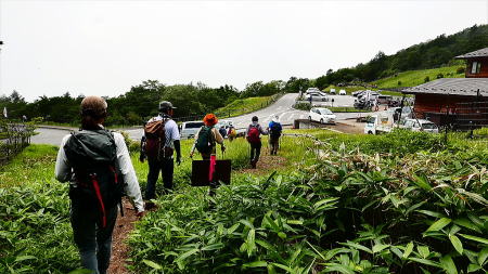 きつい坂道を走り霧降高原キスゲ平園地Pに7時20分到着。