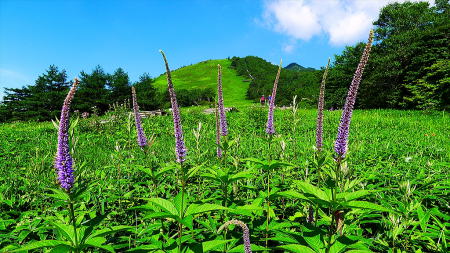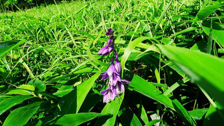 階段から離れクガイソウ、コバギボシ、クルマユリ等の
