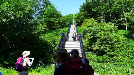 日光キスゲはこの辺りには咲いていなかった。一段一段登る。