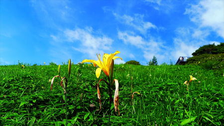 1445段の階段が終わっても日光キスゲはポツンポツンと咲き、