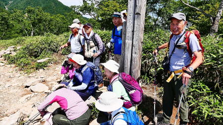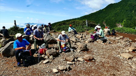 途中コルで休憩後丸山山頂に9時45分到着。10時30分まで昼食。
